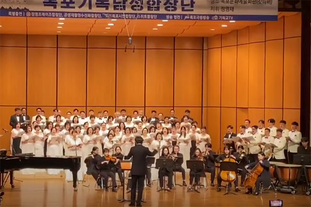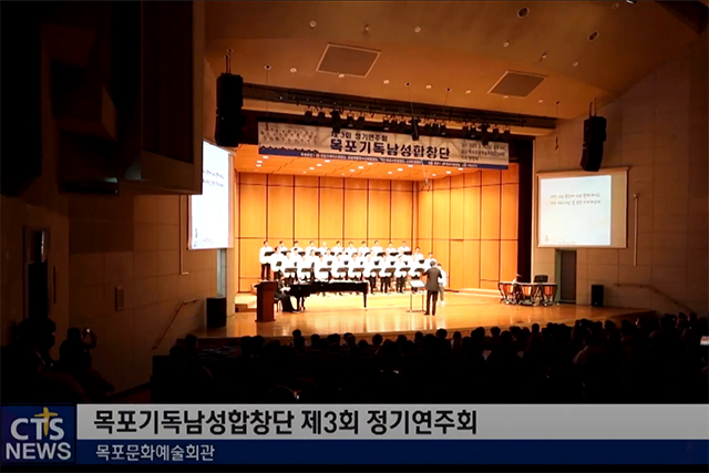 찬양으로 영광 돌리는 목포기독남성합창단이 목포문화예술회관에서 제2회 정기연주회를 펼쳤습니다.목포지역 성도들이 참석한 가운데 연주회에서는 [베드로의 기도], [전능하신 하나님] 등의 찬양곡을 비롯해 뮤지컬 형식의 [마리아의 찬가], [요셉의 꿈] 등 성탄절 칸타타를 선보였으며 판소리 허정승 명창이 특별출연해 [축복타령]을 공연했습니다.
